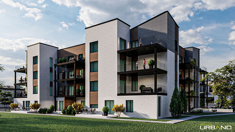 Rental condos in the heart of Terrebonne’s Urbanova district, the project is located on René-Lecavalier Street, near the Mille Îles River and just a short distance from Highway 640. This development is characterized by the strong presence of green and natural spaces nearby, from the green belt on either side of the highway, the Orée-du-Lac park on the west side and the Club de Golf Le Versant to the northeast of the project.